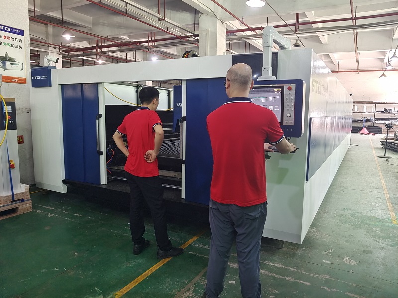 这台8025HC大幅面光纤激光切割机通过在厂反复测试检验合格后,将要跨越上千公里,去服务于它的新主人了。该设备采用12000W激光器,可以切割碳钢板厚度高达50mm,完全满足客户需求;交换工作台模式,一个工作台在切割工作的时候,另外一个工作台在上下料,大大节省时间;全包围设计,避免加工过程中发生意外,确保安全;机器前面均装有摄像头,可在外面实时监控切割过程。