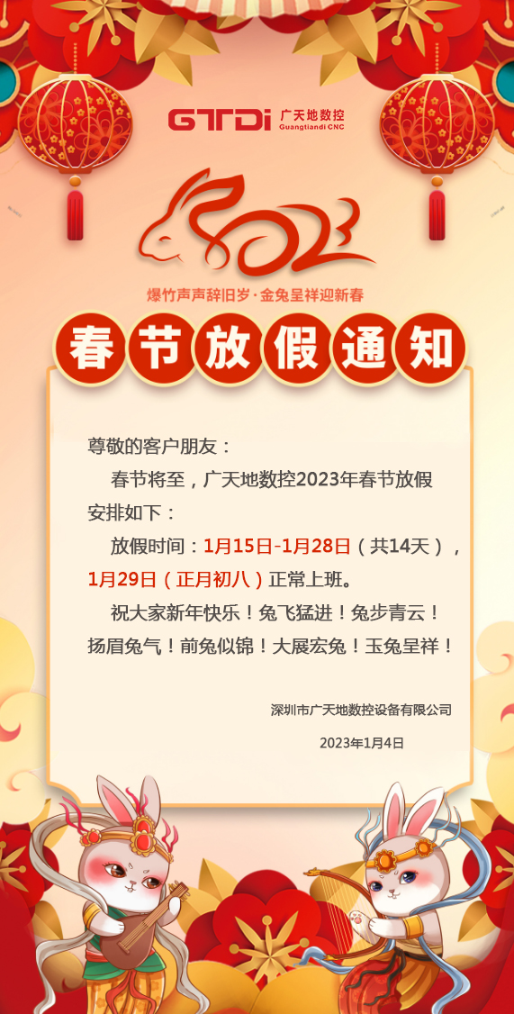 2023年春节将至,首先感谢您在2022年里的鼎力支持和愉快合作,亚星|会员数控全体同仁在此给您拜个早年。在新年的一年里,亚星|会员将更加努力,为您提供更优质的服务。按照国家春节放假规定结合我司的具体情况,春节放假时间安排如下: