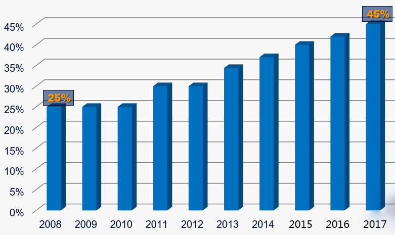 IPG激光器早就实现了40%以上的插电效率(业内普遍水平是20-30%)。这样意味着,同等功率的激光器可实现更小能耗,更低水冷要求,极大降低激光器对电负载、体积和重量的要求。
